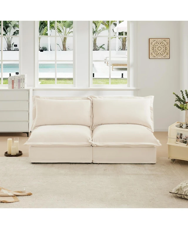 Slipcovered 2-Seater Armless Sofa with Pillows, Chenille Fabric, Cream