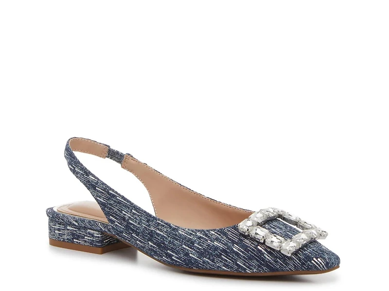 With a classic design, the Sloannes flat from Kelly & Katie brings a sharp highlight to your ensembles. This slingback style features a rhinestone-embellished buckle detail along the stylish snipped toe. Finished off with a tweed design for a tailored touch.