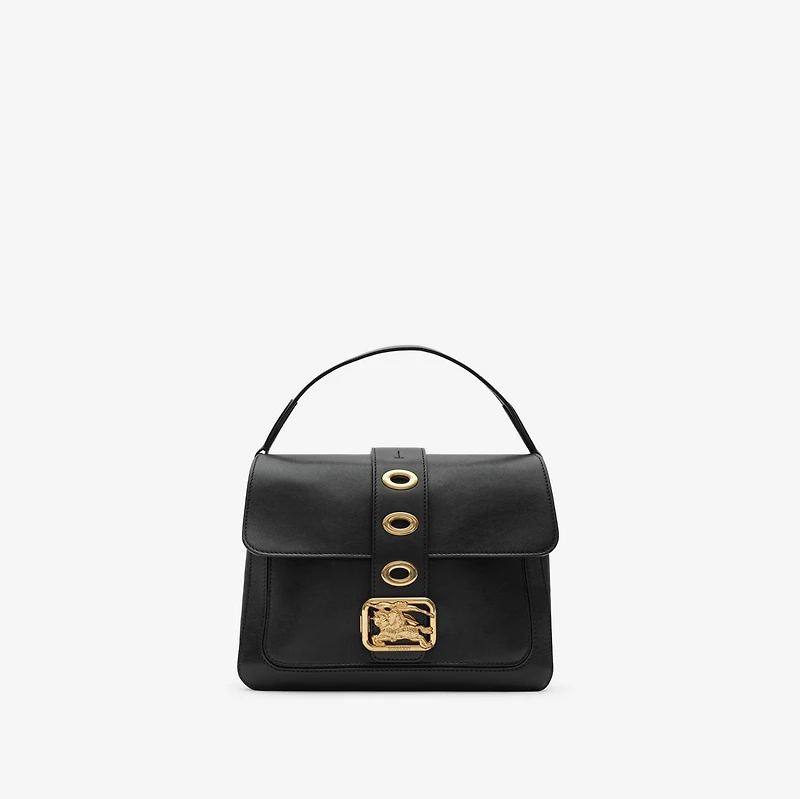 Our iconic Knight sits at the centre of the new Rider bag. The striking top-handle shape is crafted in Italy from supple leather – treated with oil and wax for a soft finish and rich sheen. Debuted on the Burberry Summer 2026 runway, the bag is distinguished by a polished metal Equestrian Knight Design and matching oval eyelets. Use the detachable strap to style as a cross-body. Top handle Detachable, adjustable strap Foldover top with buckle closure Front slip pocket, back press-stud slip pocket Hand-painted edges Brushed metal hardware Engraved Burberry lettering at closure Suede lining