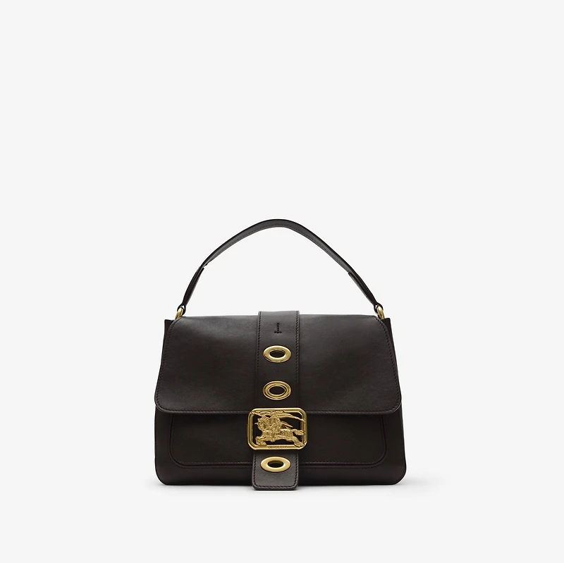 Our iconic Knight sits at the centre of the new Rider bag. The striking top-handle shape is crafted in Italy from supple leather – treated with oil and wax for a soft finish and rich sheen. Debuted on the Burberry Summer 2026 runway, the bag is distinguished by a polished metal Equestrian Knight Design and matching oval eyelets. Use the detachable strap to style as a cross-body. Top handle Detachable, adjustable strap Foldover top with buckle closure Front slip pocket, back press-stud slip pocket Hand-painted edges Brushed metal hardware Engraved Burberry lettering at closure Suede lining