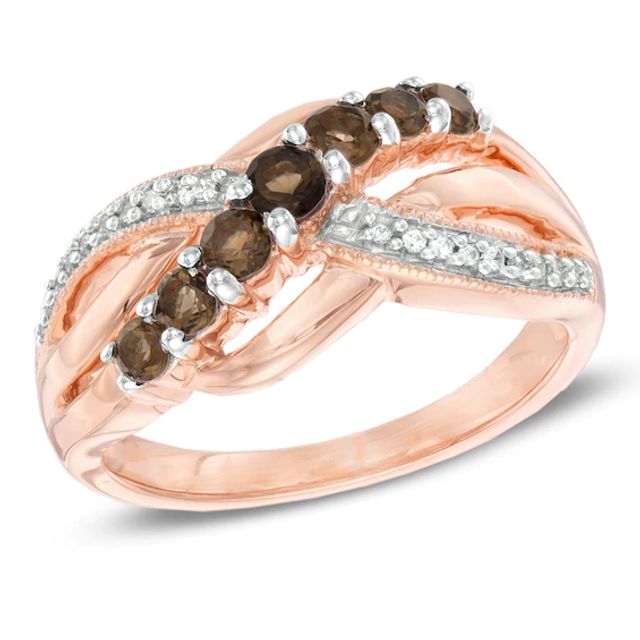 Oval Smoky Quartz and 3/4 CT. T.w. Enhanced Champagne and White Diamond Ring in 10K Rose Gold