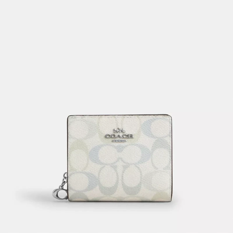 The Snap Wallet works well for everyday organization. Crafted of Signature canvas and smooth leather, it features three credit card slots, a full-length bill compartment, an outside zip coin pocket and an ID window for convenient storage.