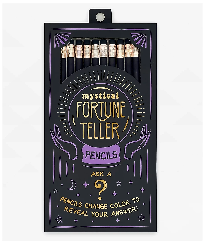 Tell the future with the color changing Fortune Teller pencils from Snifty. Simply ask a yes or no question, and then rub the barrel of a pencil to reveal the answer. Each of the ten pencils offers a different fortune.