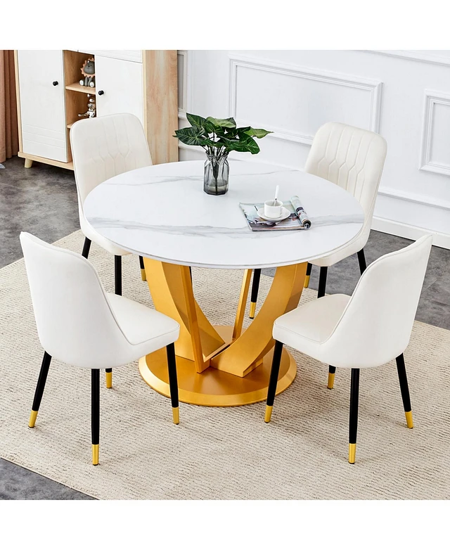 Snow Mountain White Round Dining Set - 47" with 4 White Chairs