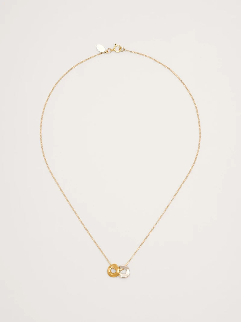 Perfect for when you need a little extra love. Double Halo Benders snuggle up on a timeless box chain with light texture—in your choice of recycled sterling silver or 14K gold vermeil. Salt Grass Jewelry: Salt Grass Jewelry creates slow-made, sculptural pieces inspired by the high desert—modern heirlooms rooted in nature, symbolism, and thoughtful craftsmanship. Clasp closure. 16" chain.