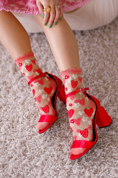 Sock Candy Strawberry Daisy Ruffle Sheer Sock in Bloomington, MN