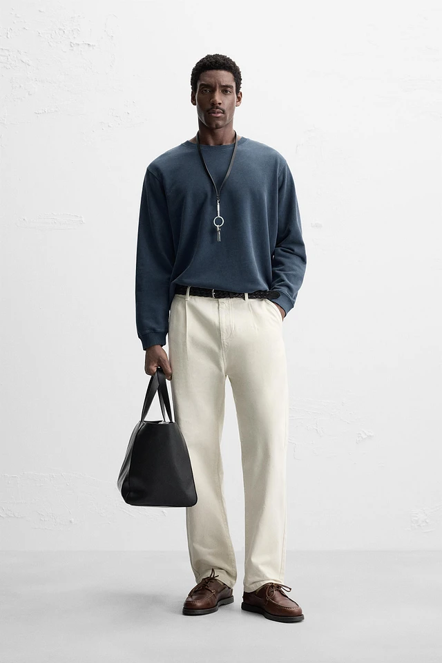 WASHED EFFECT TEXT PLUSH SWEATSHIRT