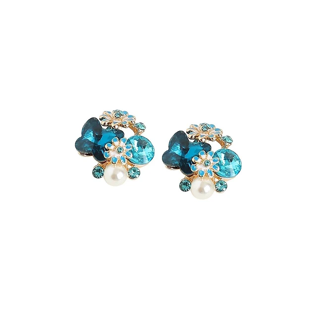 Sohi Women's Blue Embellished Cluster Stud Earrings