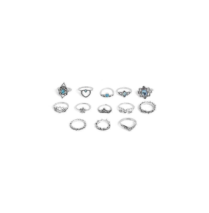 Sohi Women's Silver Pack Of 13 Oxidized RingsSohi Women's Silver Pack Of 13 Oxidized RingsSohi Women's Silver Pack Of 13 Oxidized Rings
