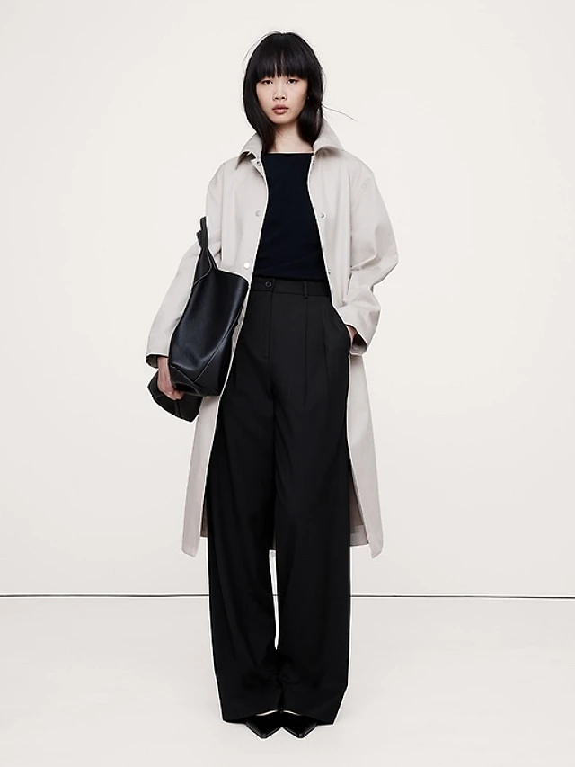 High-Rise Modern Straight Italian Lightweight Wool Pant