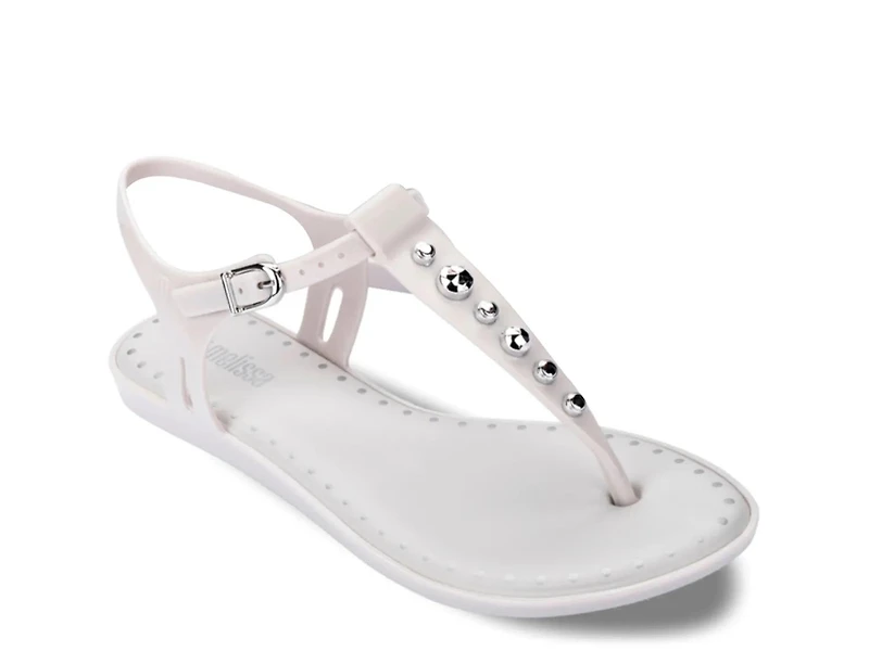 Bring a lively touch to your casual look with the Melissa Solar Boho sandal. Metallic stud detailing catches the eye, while the flexible design and signature bubblegum scent bring a supportive highlight to this pair.