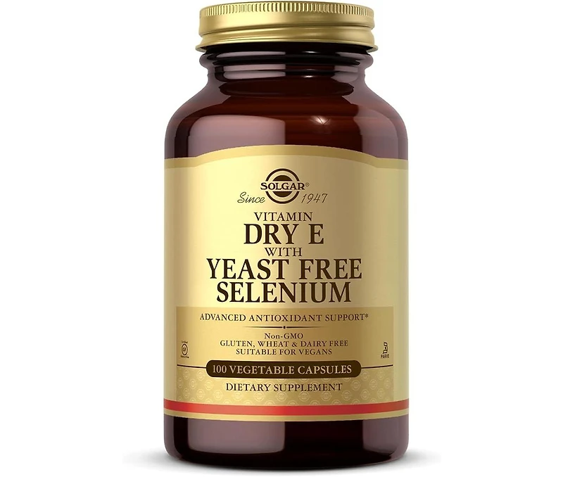 Solgar Dry Vitamin E with Yeast-Free Selenium Vegetable Capsules ,100 V Caps