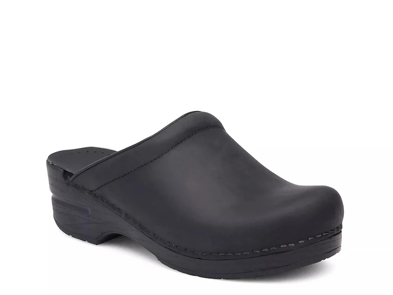 The Sonja clog by Dansko is all you need to look and feel good. Oiled leather, airy single-density open synthetic foam sockliner, contoured midsole and supportive sole make this stapled clog a must-have.
