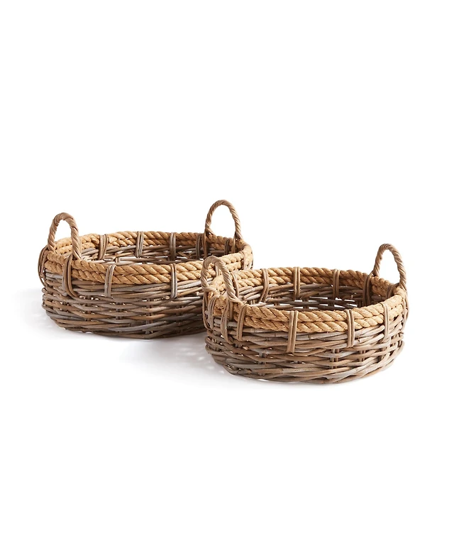 Home Outfitters S/2 V-Weave Round Baskets, White