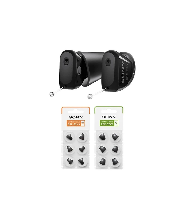 Sony Cre C20 Self Fitting Otc Hearing Aids with 6 Pair Vented Sleeves Bundle