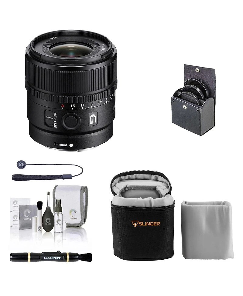 Sony E 15mm f/1.4 G Lens, Bundle with ProOptic 55mm Filter Kit, Lens Case, Lens Cleaner, Cleaning Kit, Universal Lens Cap Tether
