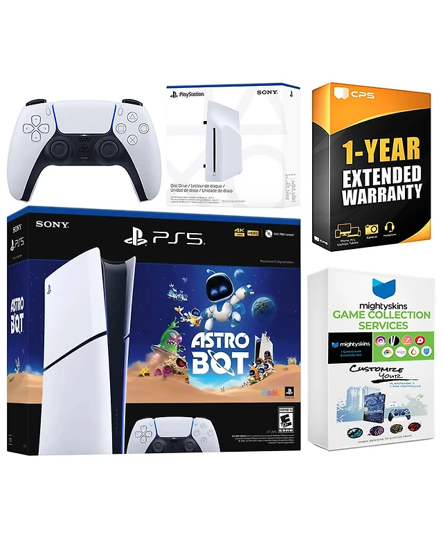 Sony PlayStation 5 Slim Disc PS5 Astro Bot Bundle with Extra Controller, MightySkins Voucher and 2 Year Extended Warranty