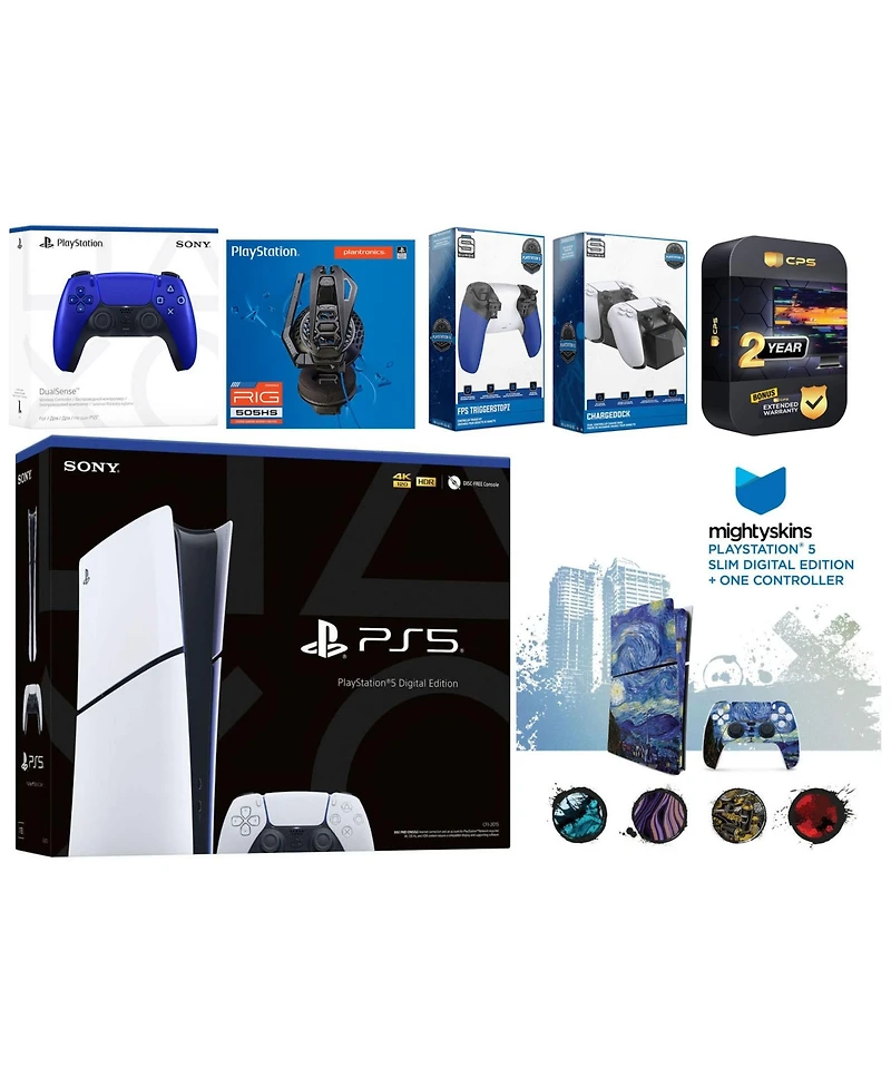 Sony Playstation 5 Slim Digital with Extra Volcanic Red Controller, Plantronics Headset, Trigger Stop Kit, Charge Dock and MightySkins Decal Voucher +