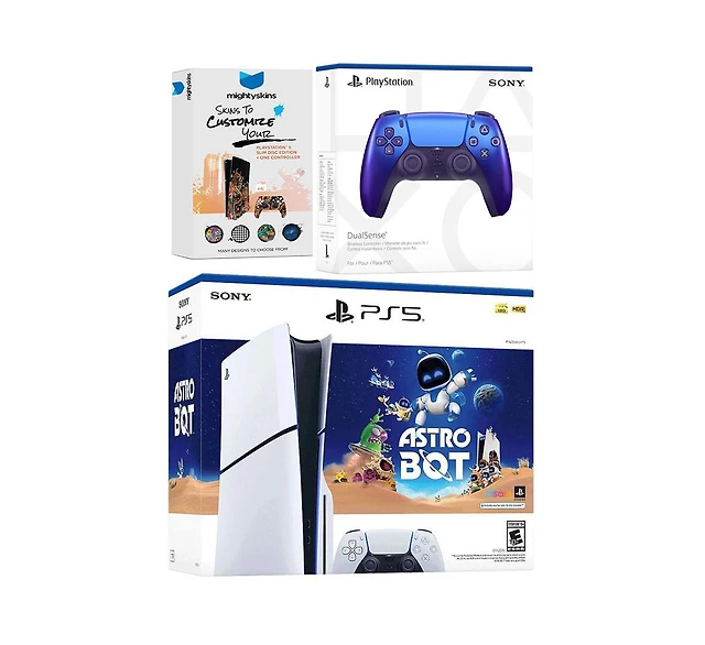 Sony PlayStation 5 Slim Disc PS5 Astro Bot Bundle with Extra Controller and MightySkins Voucher