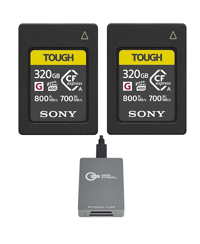 Sony Tough 320GB CFexpress Type-a Memory Card, 2-Pack, Bundle with Usb-c CFexpress Type-a and Sd Uhs-ii Card Reader