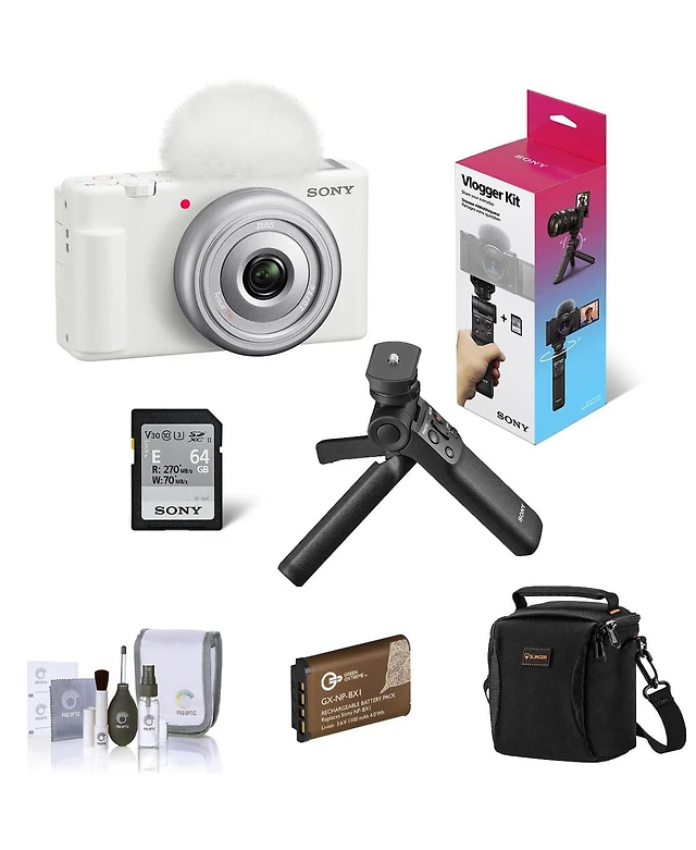 Sony Zv-1F Vlogging Camera, White Bundle with 64GB Sd Card, Shoulder Bag, Shotgun Mic, Tripod, Extra Battery, Charger, Cleaning Kit