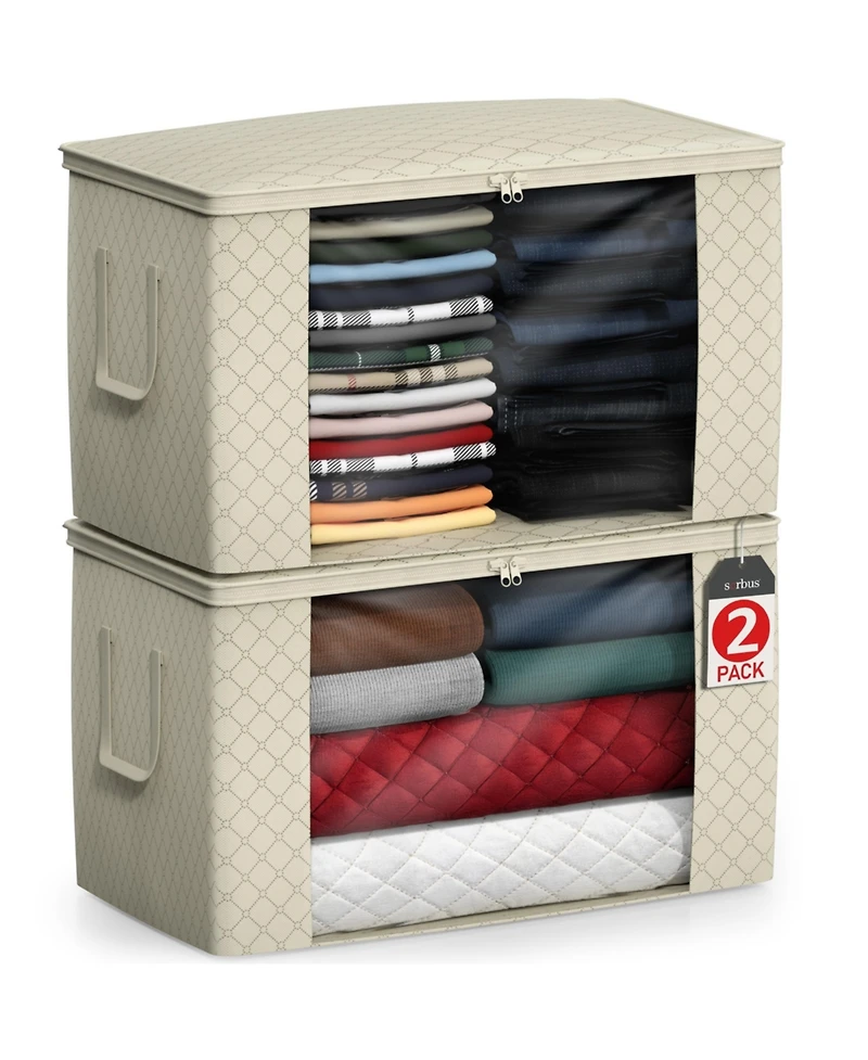 Sorbus Foldable Storage Bag Organizers, Large Clear Window & Carry Handles, Great for Clothes, Blankets, Closets, Bedrooms, and more