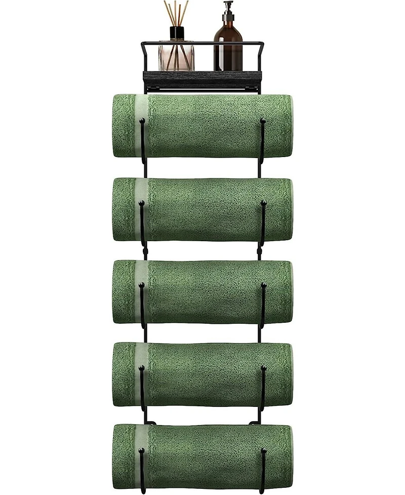 Use the Sorbus Wall Mounted Towel Rack to display and organize your bath towels. Free up valuable space in your bathroom by hanging your rolled towels with this hanging wall towel rack