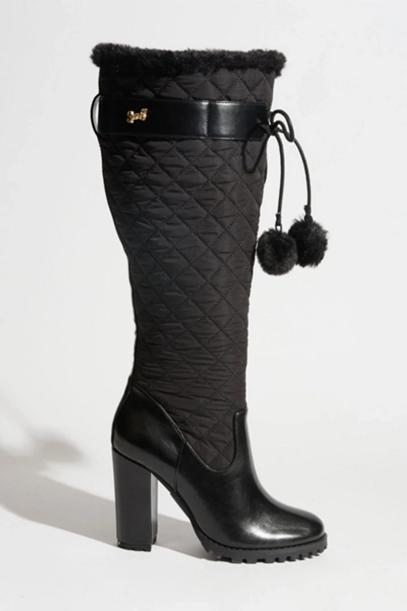 Step into style with these puffer boots. Stay cozy and chic this winter with this statement knee-high design that blends fashion and function effortlessly. Crafted with a sleek puffer finish, these boots keep you warm while adding a bold touch of modern glamour. The soft insulated lining ensures lasting comfort, while the easy side zip allows for a perfect fit every time. Perfect for pairing with jeans, leggings, or a winter dress, these boots bring a stylish edge to any outfit. Whether you are out in the city or enjoying a cozy getaway, they keep you warm, confident, and effortlessly fashionable all season long.