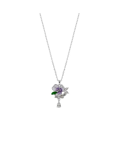 Spero London Pansy Violet Floral Necklace in Sterling Silver
