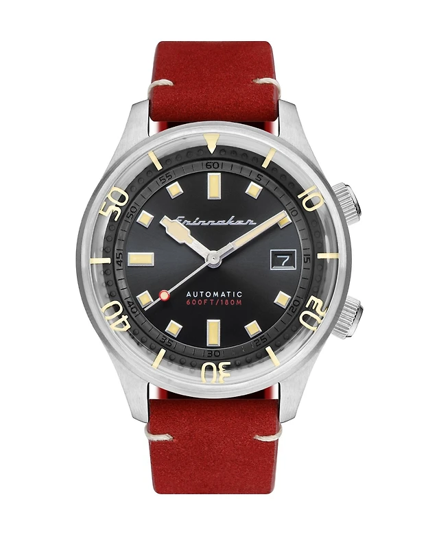 Spinnaker Men's Bradner Automatic Red Genuine Leather Strap Watch 42mm