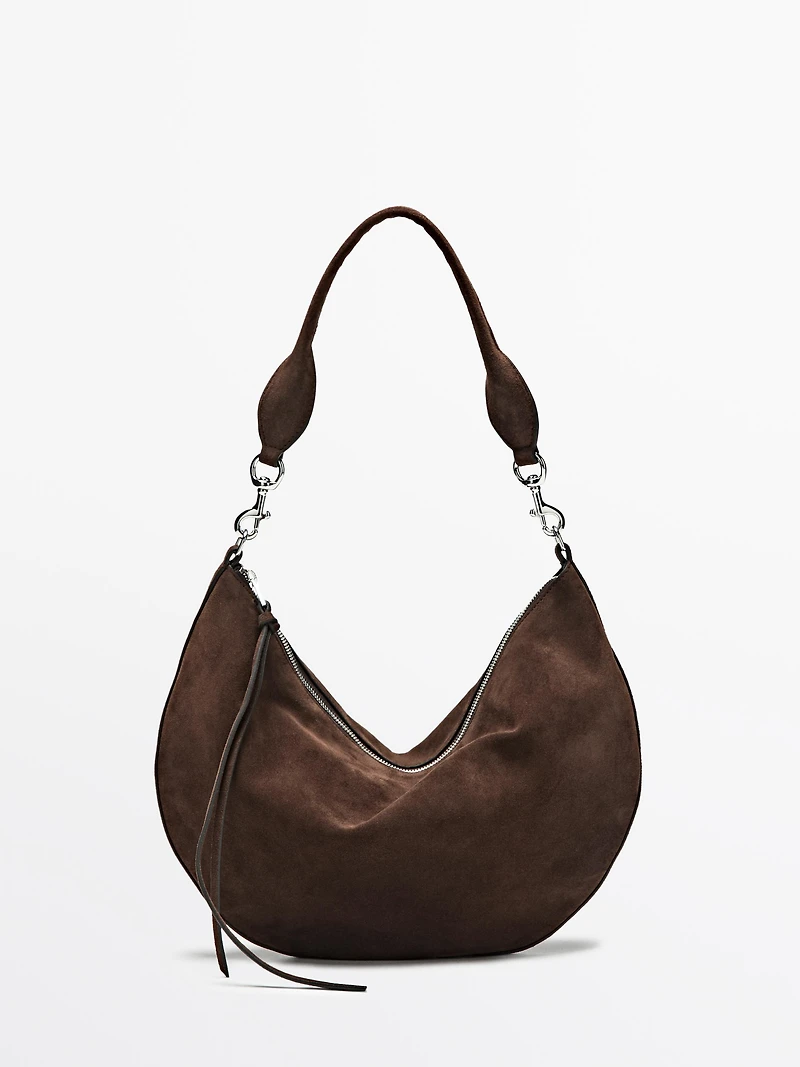 Split leather half-moon bag