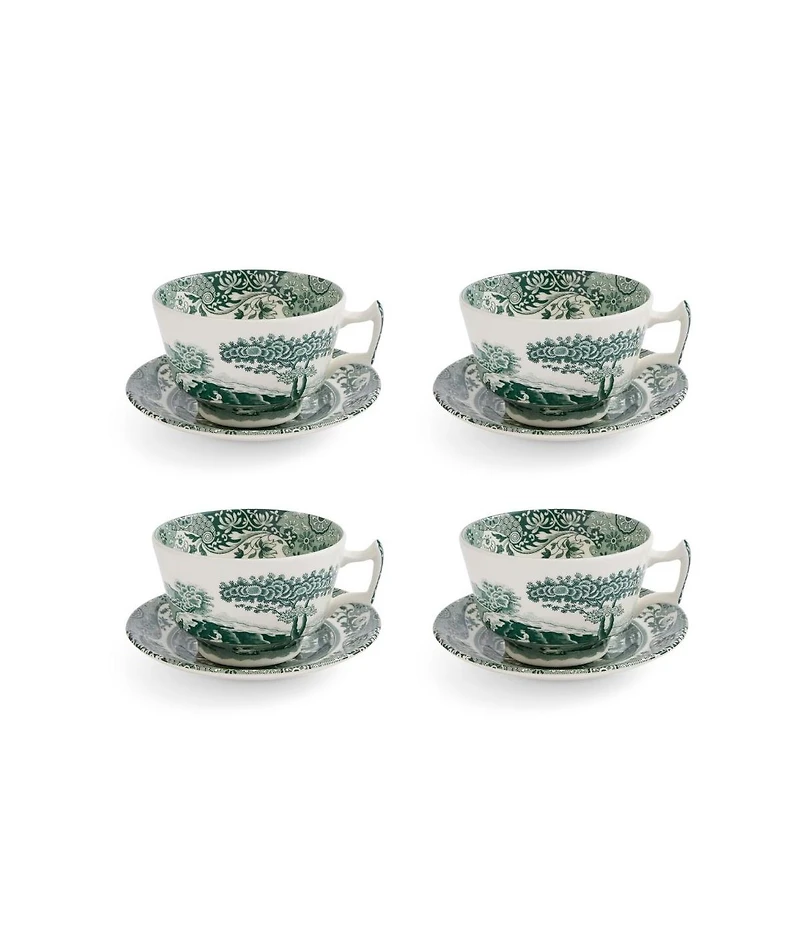 Spode Heritage Green Italian Teacup and Saucers, Set of 4