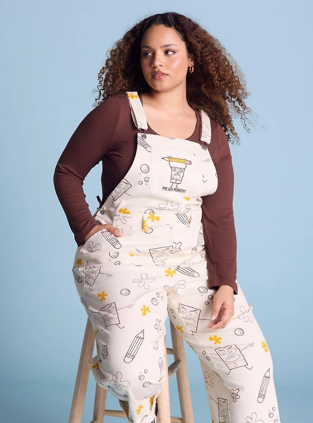 SpongeBob SquarePants DoodleBob Allover Print Women's Plus Overalls - BoxLunch Exclusive