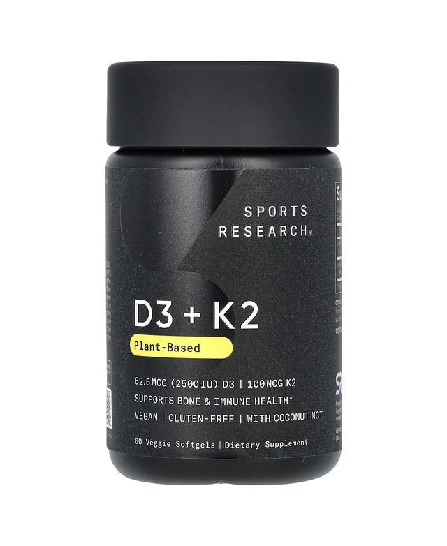 Sports Research D3 + K2 Plant-Based 62.5 mcg/100 mcg