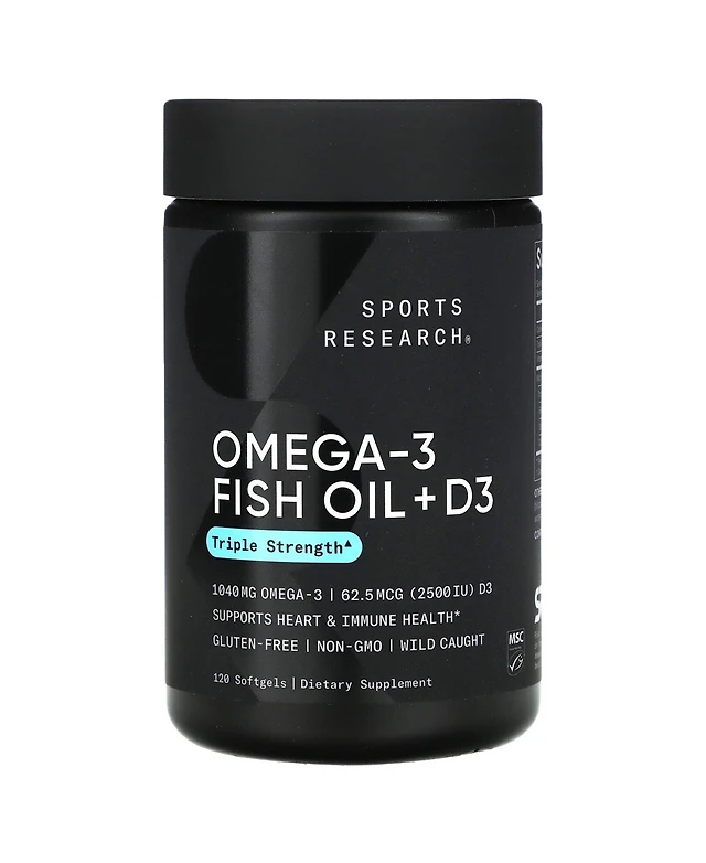 Sports Research Omega-3 Fish Oil + D3 Triple Strength 1 040 mg & 62.5 mcg (2 500 Iu