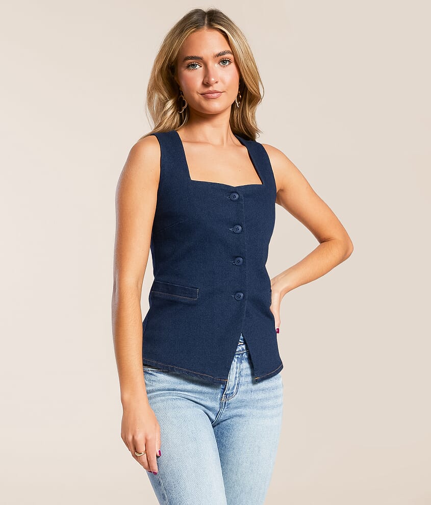 Button down split hem stretch tank Faux front pockets Back tie detail Bust measures 32" on size small Body length 23 1/2" on size small