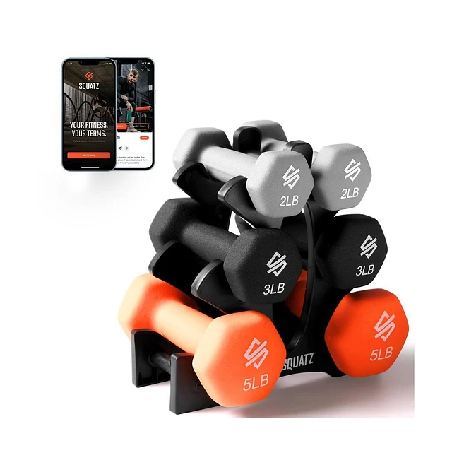 Squatz Neoprene Dumbbell Set With Stand, 20 lb Total Weight