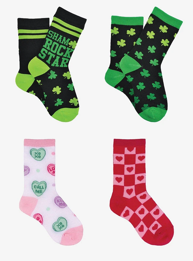 St. Patrick's Day & Valentine's Day 4-Pair Girls Crew Socks