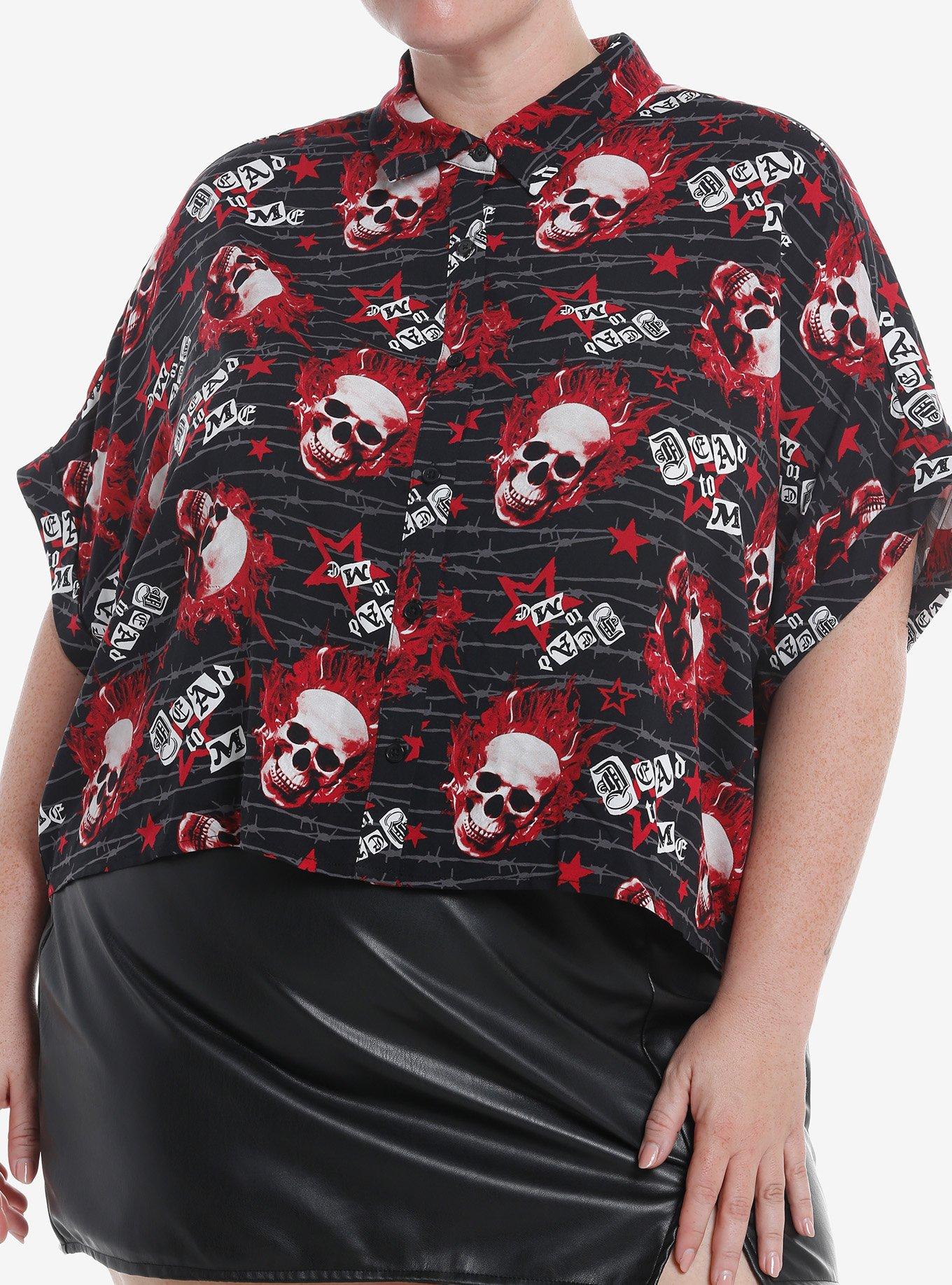 Social Collision Flaming Skulls Allover Print Girls Woven Button-Up Plus Size