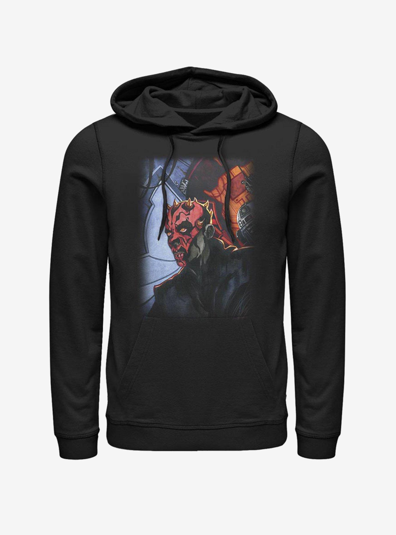 You can't keep a good baddie down. This black pullover Star Wars hoodie commemorates the return of former Sith Lord -- Darth Maul.