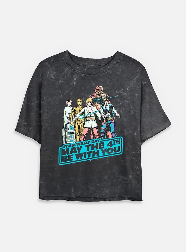Star Wars May The 4th Group Womens Mineral Wash Crop T-Shirt