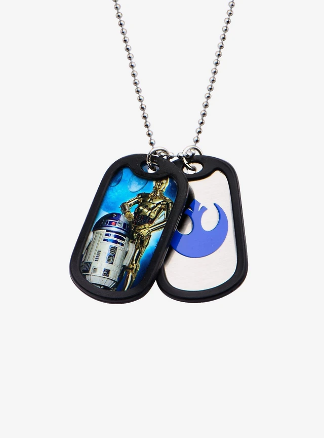 Star Wars R2-D2 and C-3PO Rubber Silencer Double Dog Tag Pendant Necklace