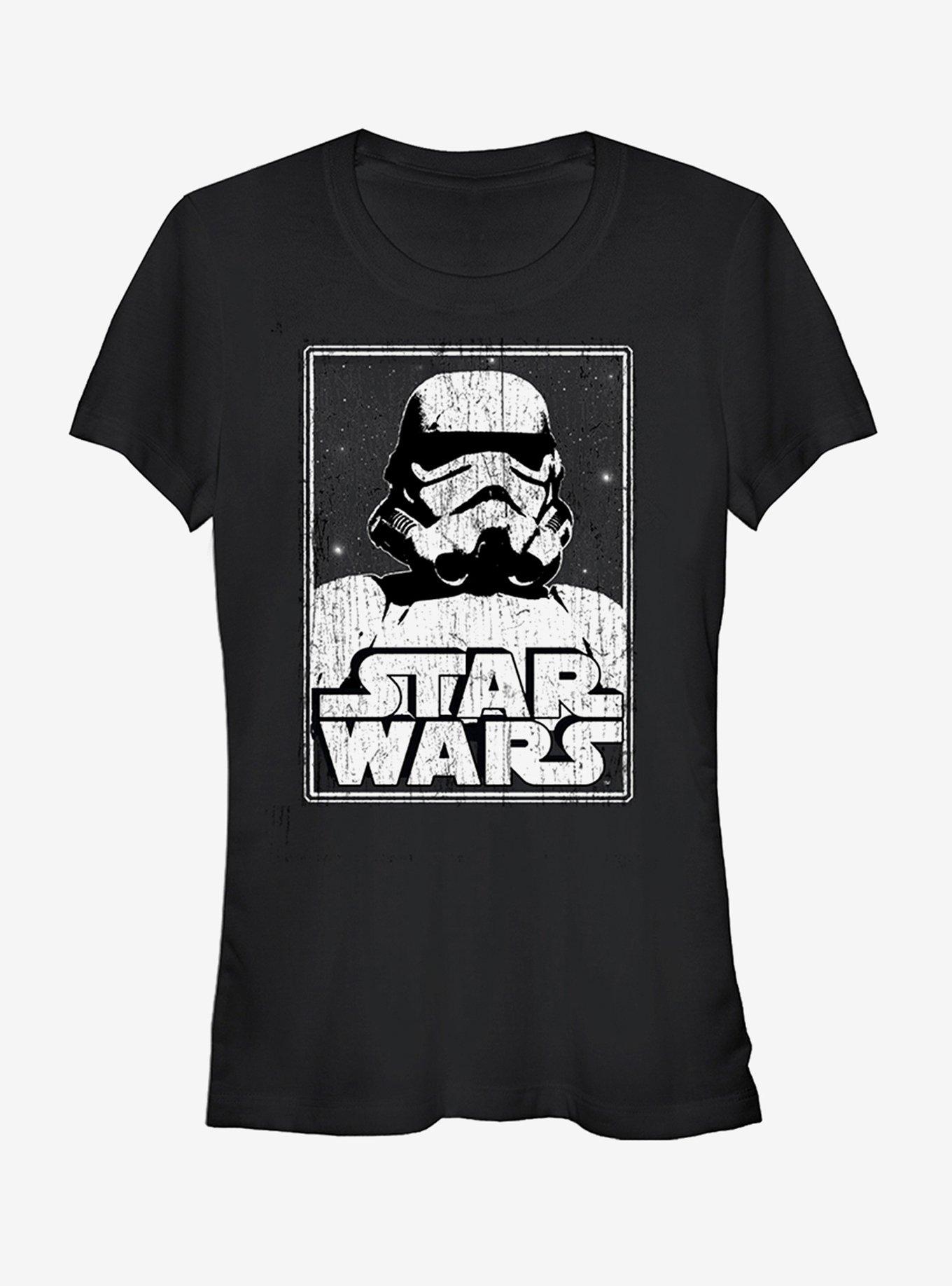One of the famous foot soldiers for the Galactic Empire is featured on the Star Wars Stormtrooper Logo Black T-Shirt. Whether you're a rebel or rooting for team Vader, all Star Wars fans will love this fitted black shirt with a stormtrooper printed next to the Star Wars logo. 100% Cotton.