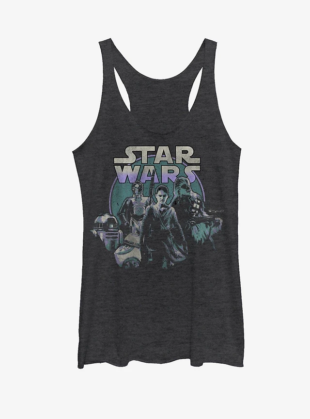 Star Wars The Force Awakens Rey and Droids Womens Tank