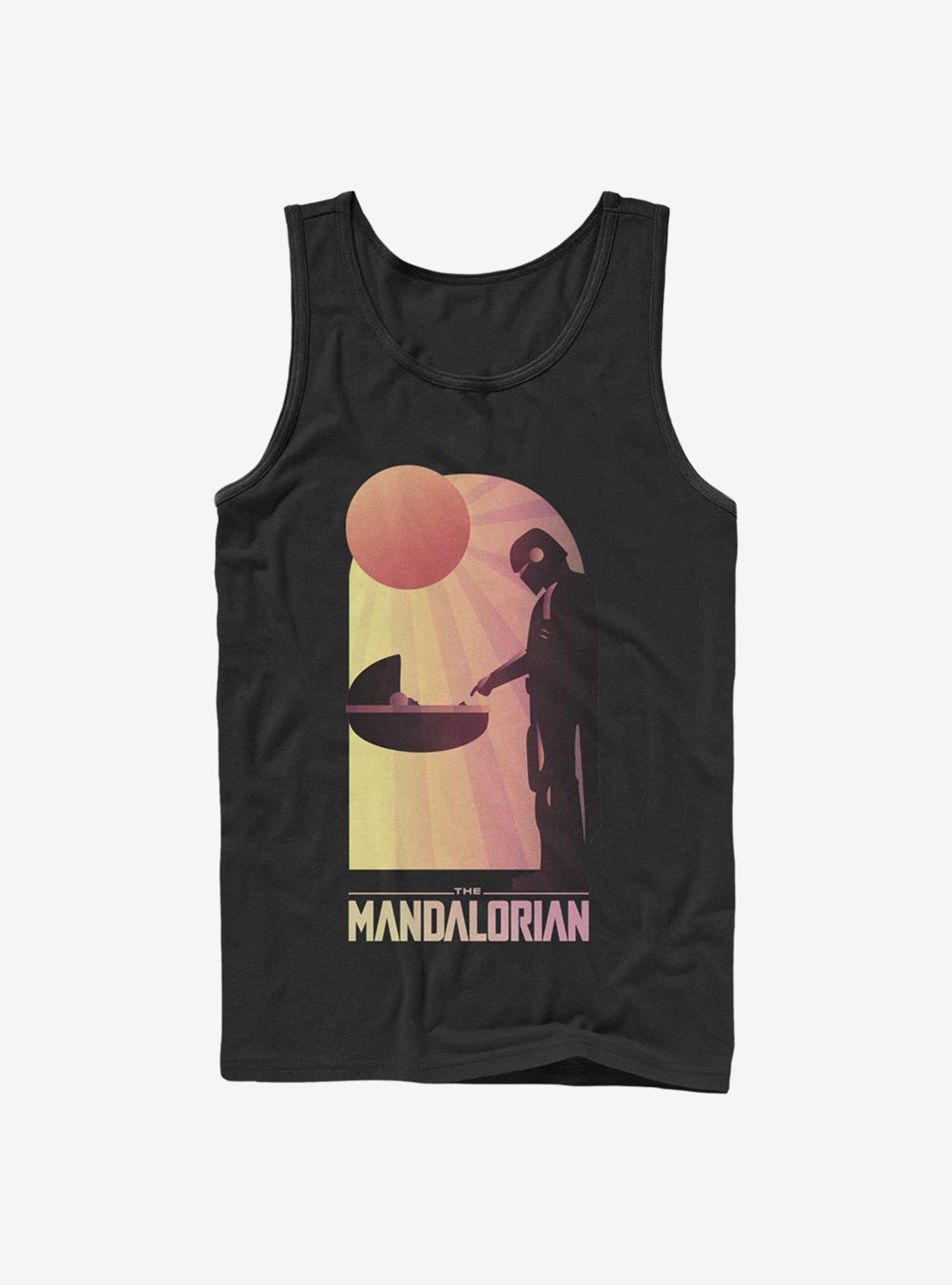 Mando, meet The Child. The Child, meet Mando. This black tank -- inspired by the Disney+ series Star Wars: The Mandalorian -- features Din Djarin and Grogu in silhouette.