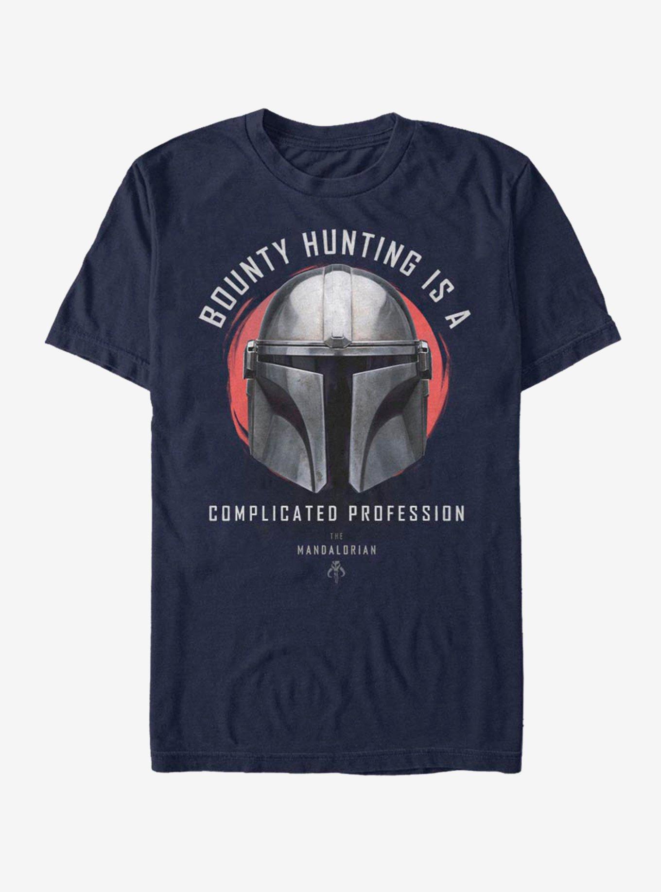 Bounty hunting? It's complicated. This navy blue tee -- inspired by the Disney+ series Star Wars: The Mandalorian -- features Din Djarin's iconic helmet bordered by "Bounty Hunting Is A Complicated Profession" verbiage.