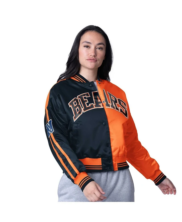 Starter Women's Navy/Orange Chicago Bears Zone Blitz Cropped Full-Snap Satin Jacket