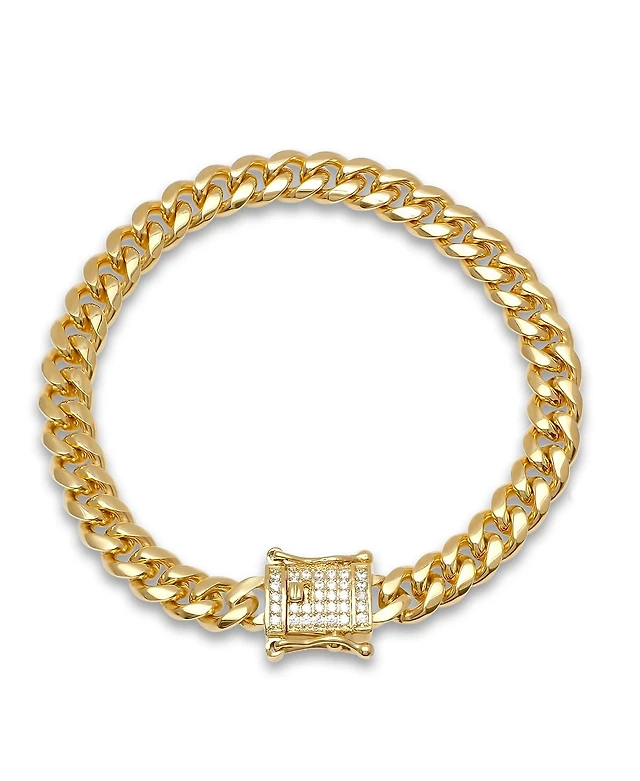 Steeltime Miami Cuban Chain with Simulated Diamond Box Clasp Bracelet