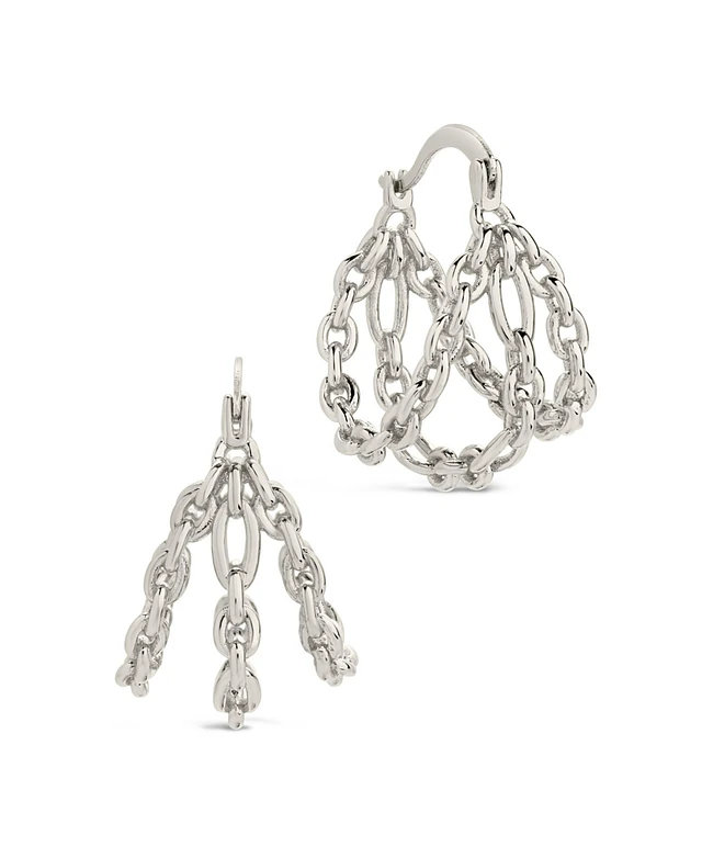 Sterling Forever 14K Gold Plated or Rhodium Plated Triple Chain Tenly Hoops Earrings