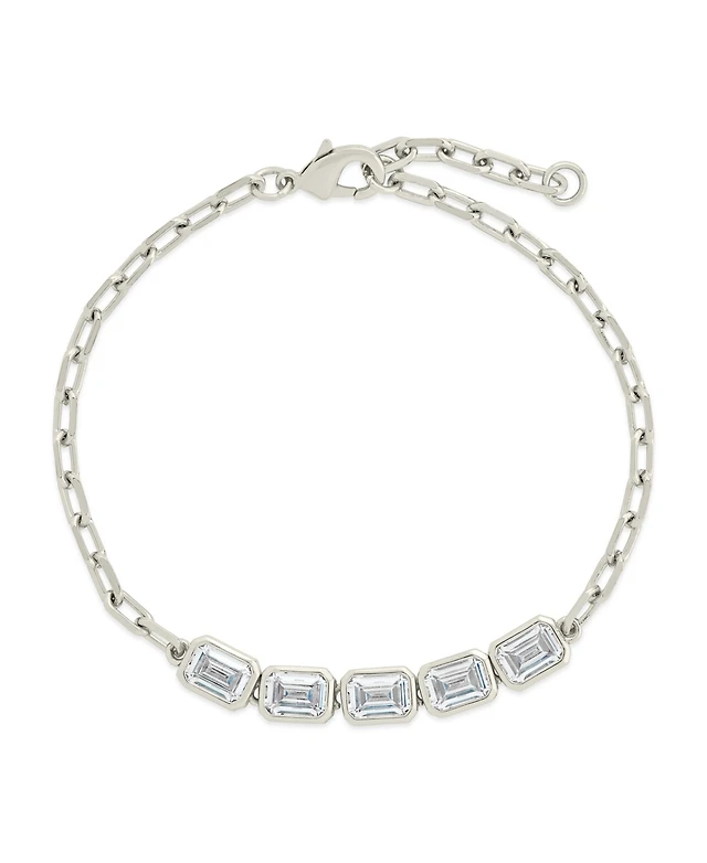 Sterling Forever Lennox Station Cubic Zirconia Chain Bracelet